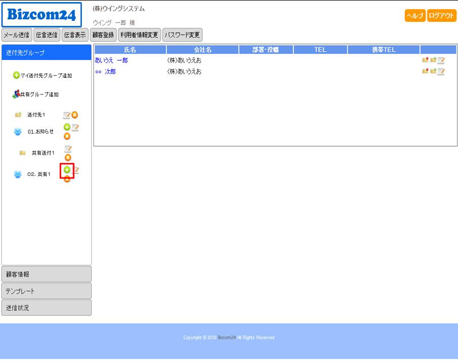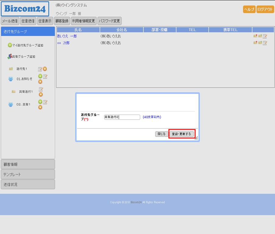 送付先グループ名を入力後、「登録・更新する」をクリックしてください。