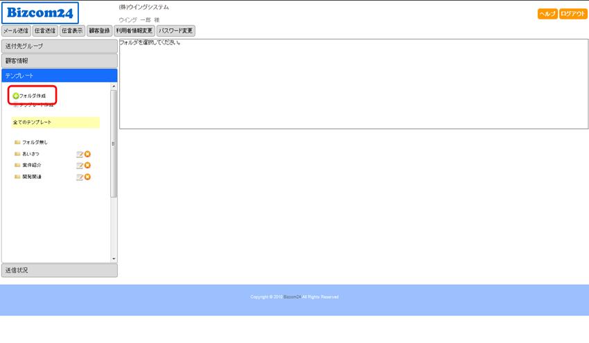左メニューの、「フォルダ作成」の追加アイコンをクリックすることで、
