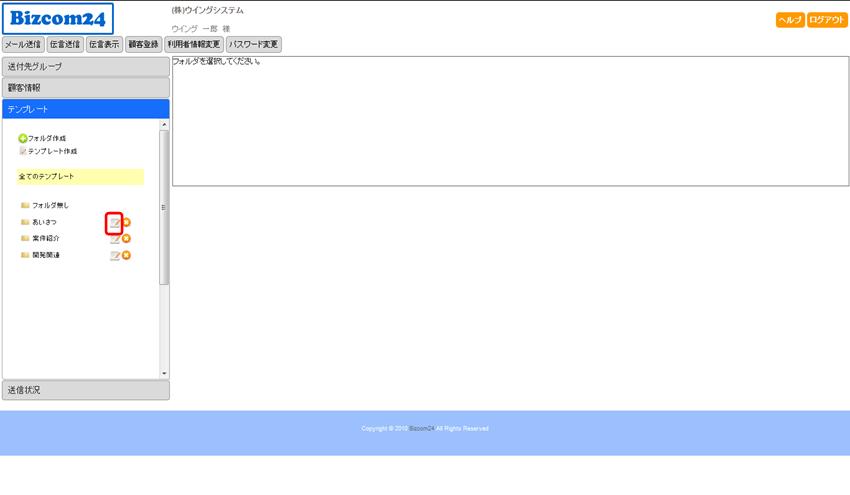 左メニューより、変更するテンプレートフォルダの変更アイコンをクリックすることで、