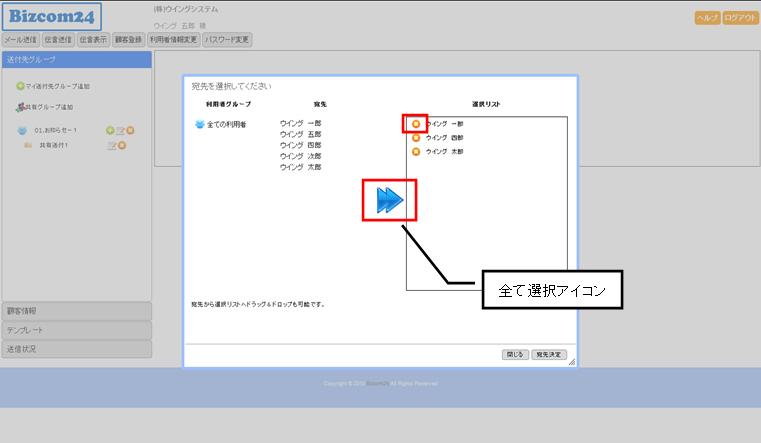 「全て選択」アイコンをクリックすると、宛先に表示されている全ての利用者を一度に設定できます。