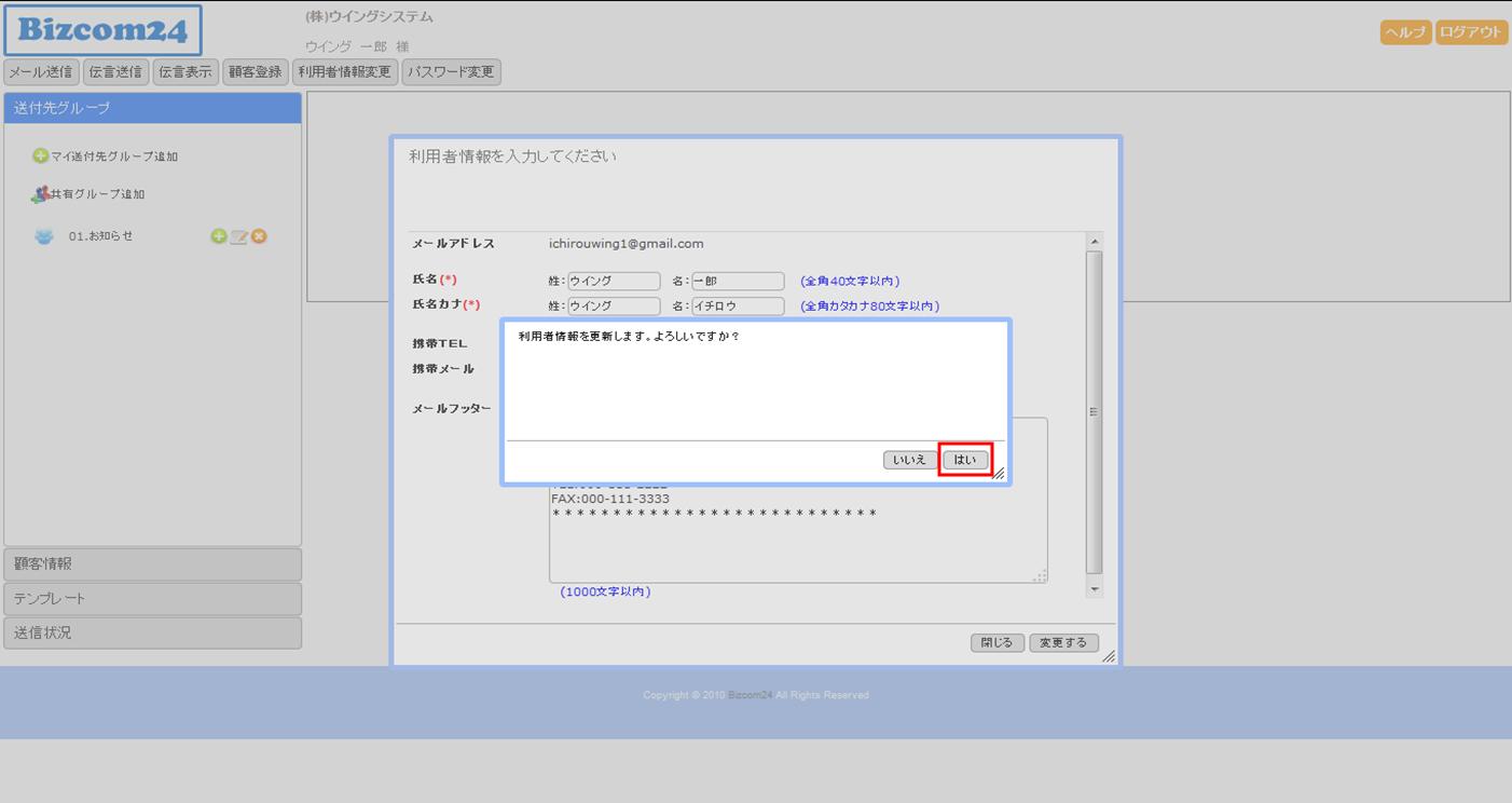 登録情報確認画面が表示されますので内容に間違いなければ「はい」をクリックしてください。